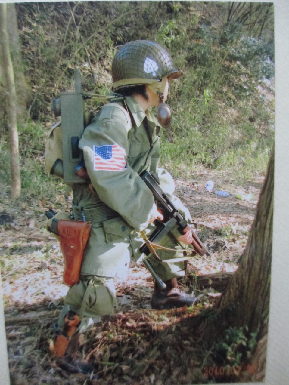 父親のアルバムには高校生のころのWW2の装備をしている父の姿。